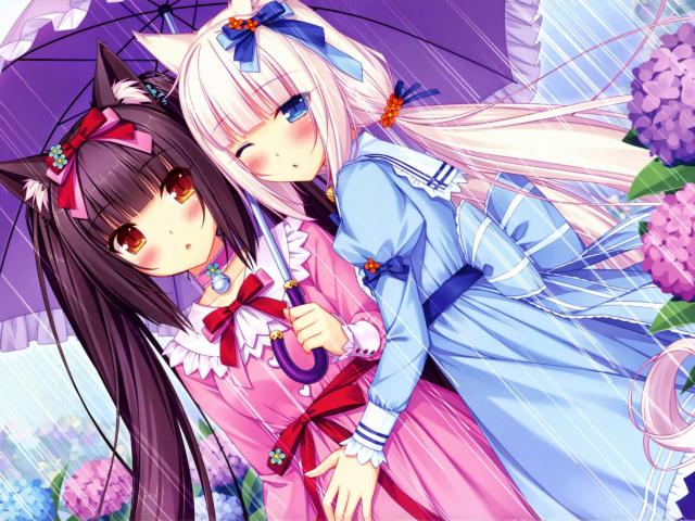 Wallpaper Two girlfriends under umbrella Anime Neko Para