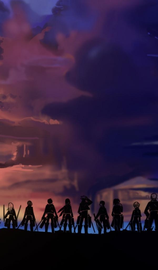 Wallpaper Anime characters Attack of the Titans against the background of clouds