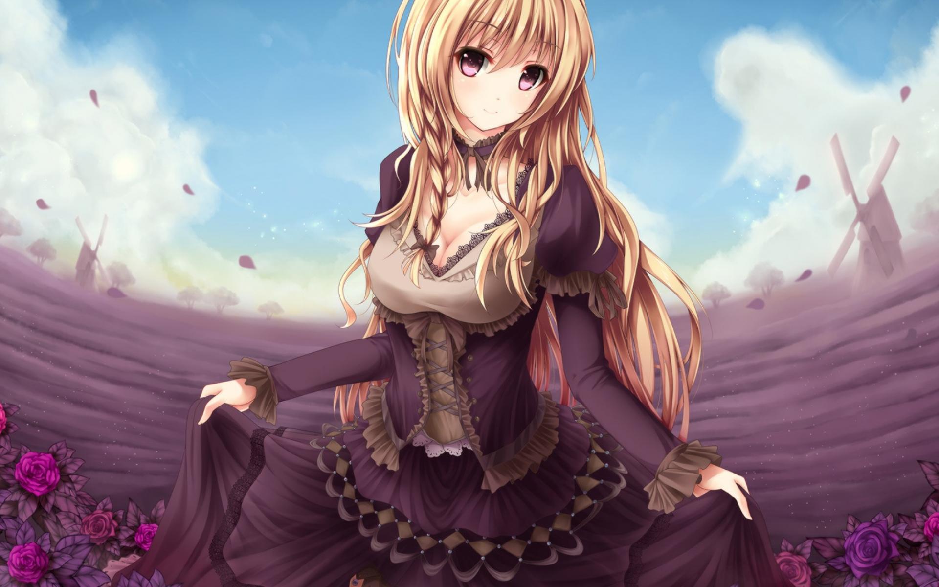 Wallpaper Anime girl in an elegant black dress