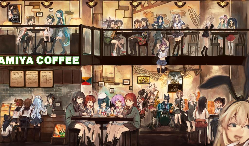 Wallpaper Girl in the Cafe in the anime Kantai Collection