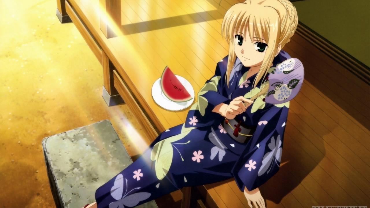 Wallpaper Girl eats watermelon in the anime Fate Series