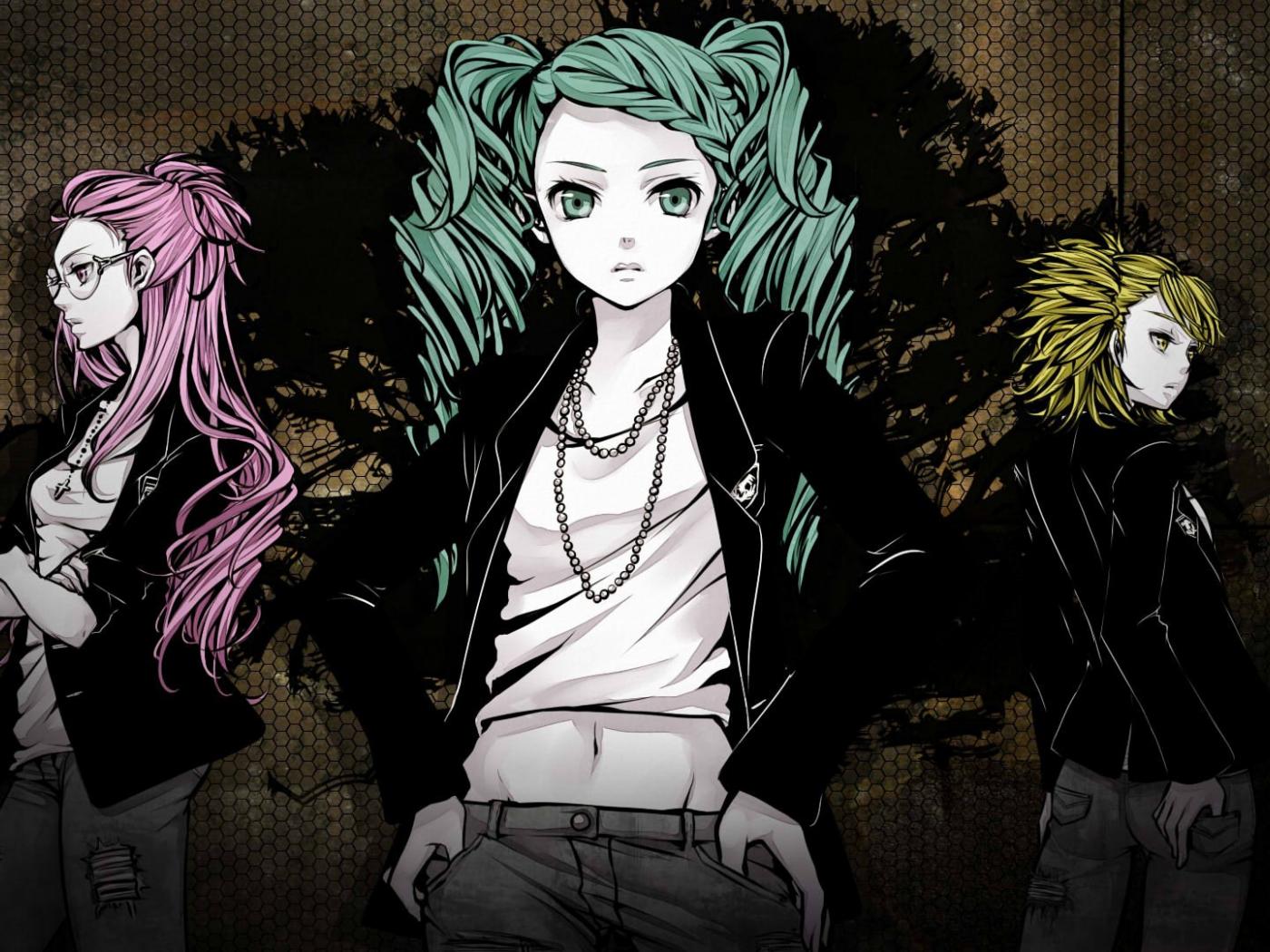 Wallpaper Three anime girls with hair of different colors