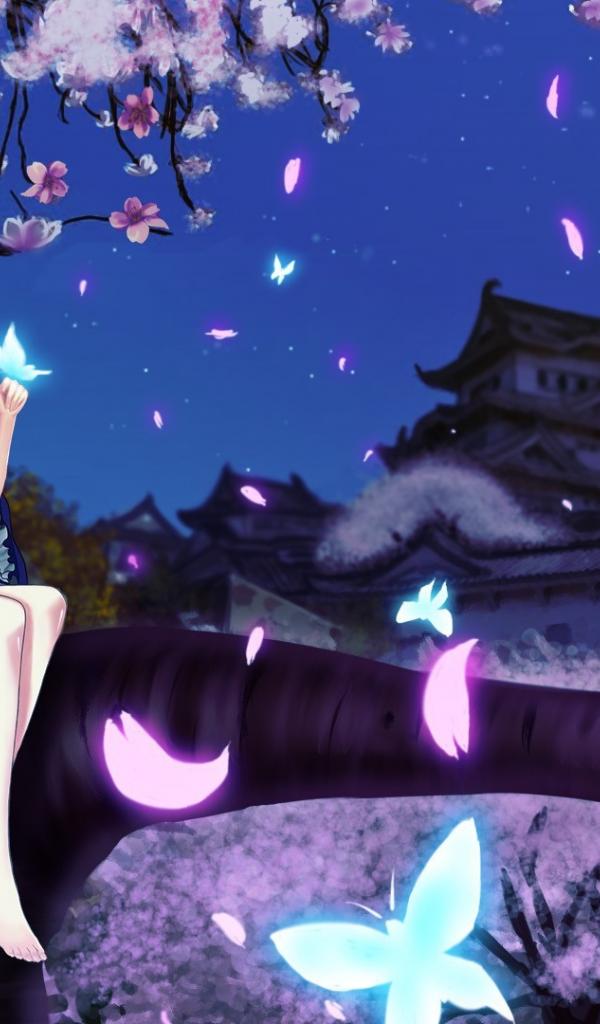 Wallpaper Girl sitting on a tree in the anime Saigyouji Yuyuko