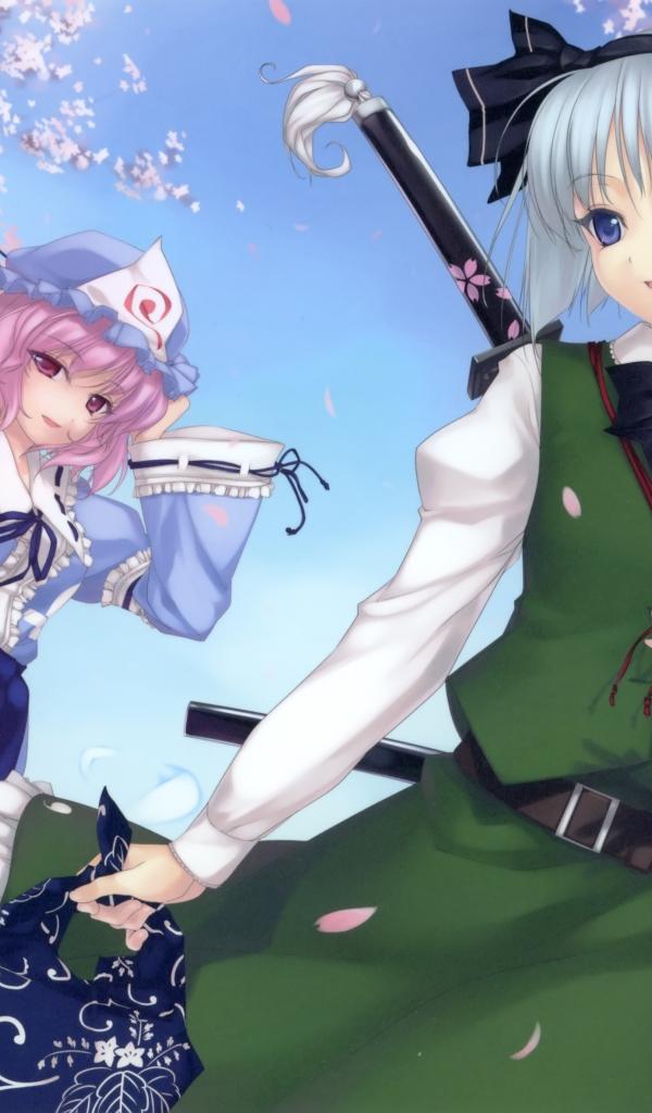 Wallpaper A couple of girls under an umbrella in the anime Saigyouji Yuyuko