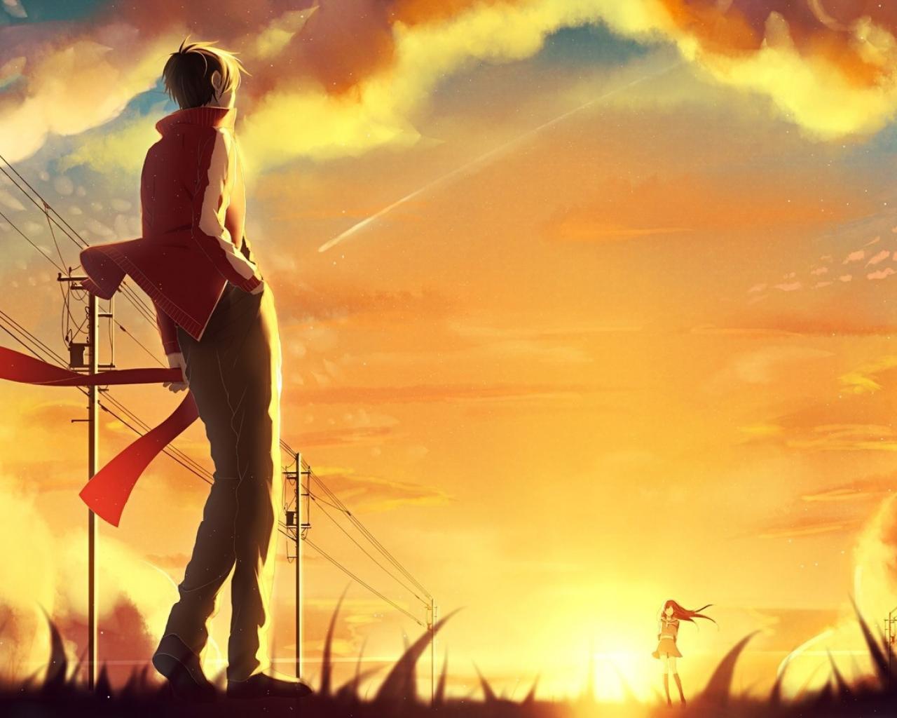 Wallpaper Meeting at sunset in the anime Kagerou Project