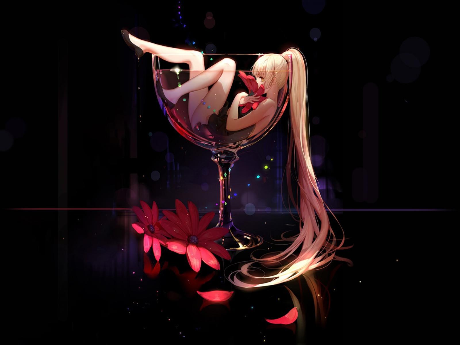 Wallpaper Anime girl lies in a glass