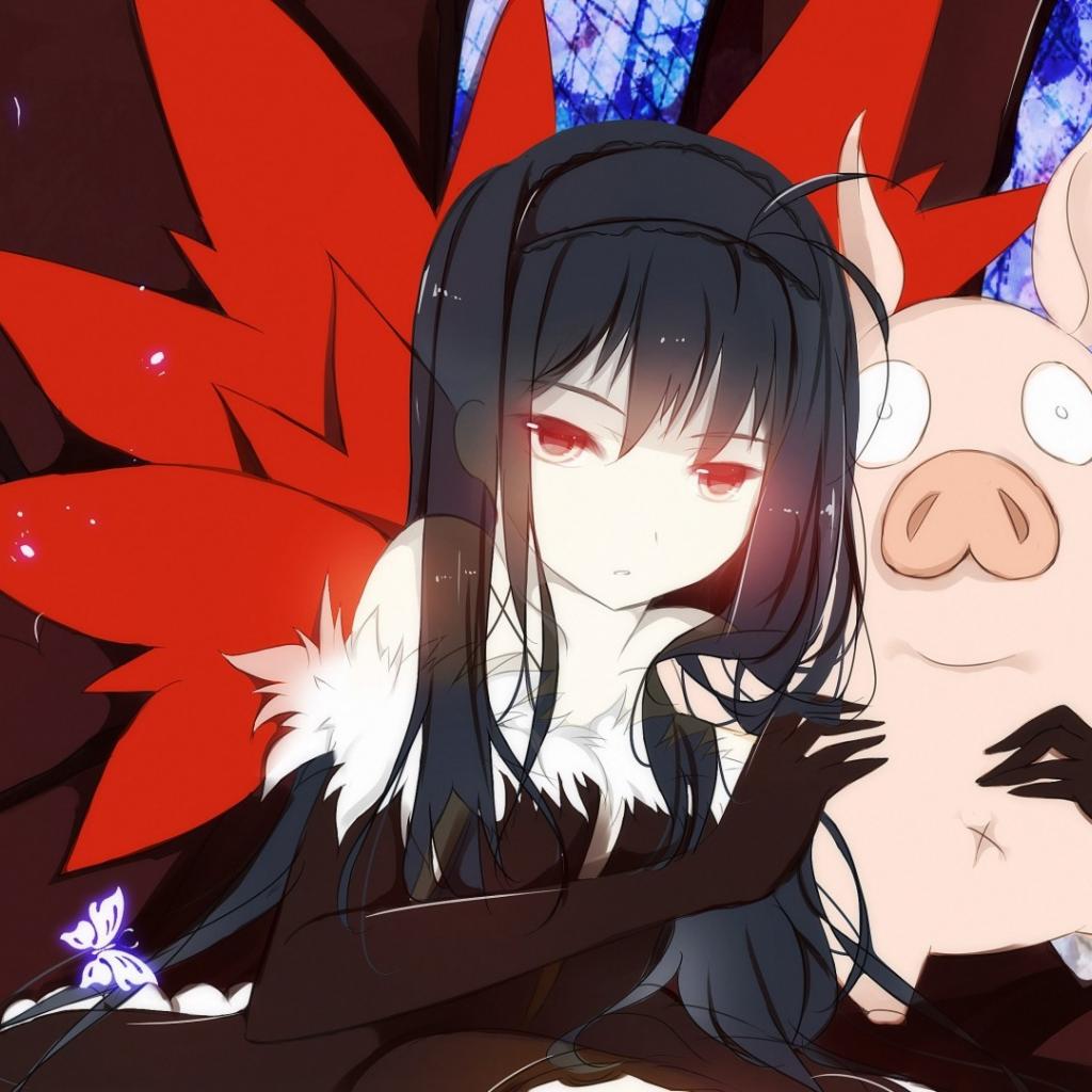 Wallpaper Anime girl with a pig