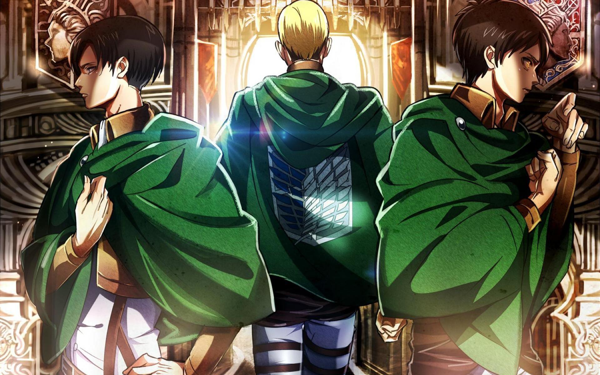 Wallpaper Heroes of Manga Attack of the Titans in green capes