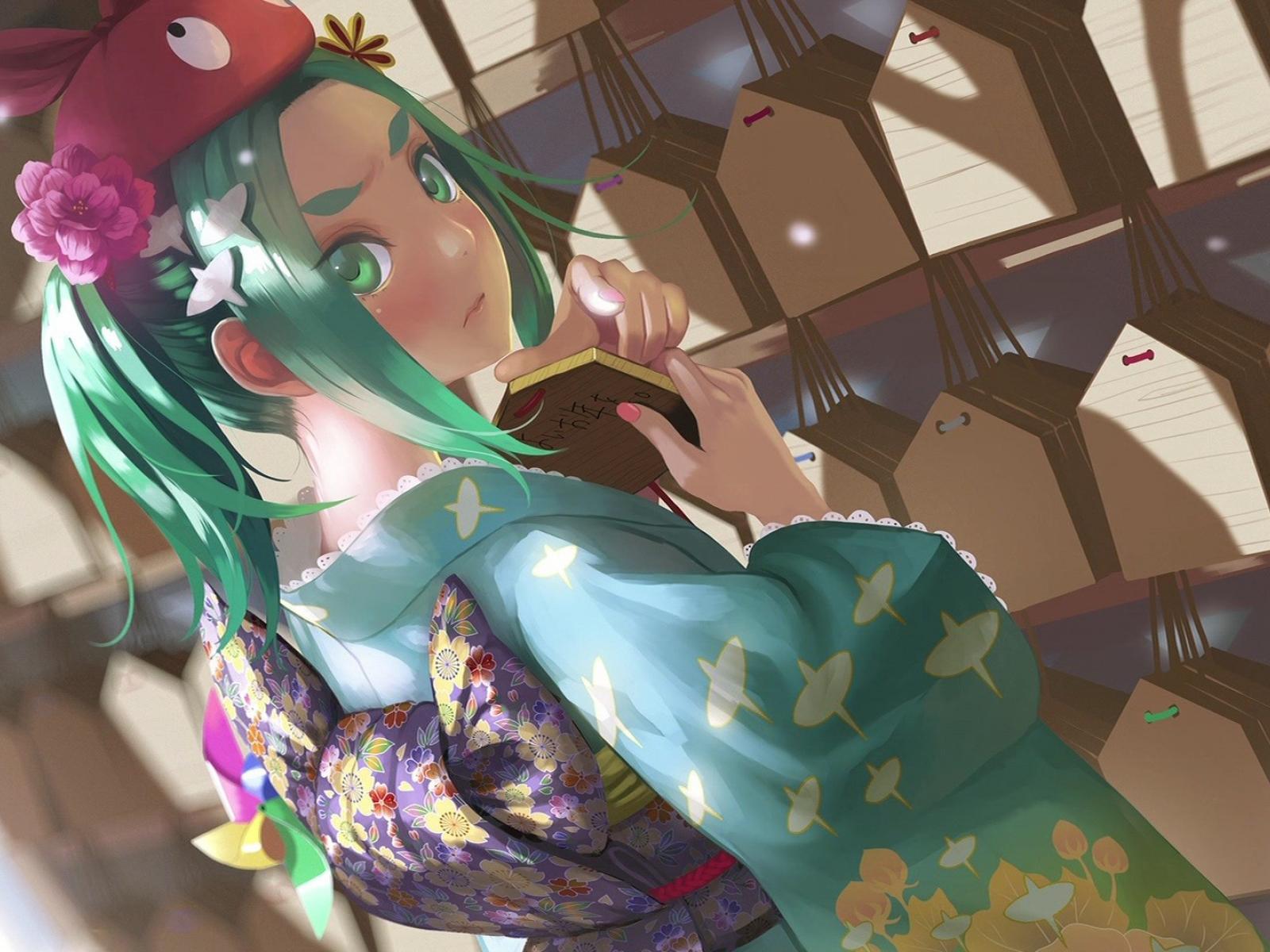 Wallpaper Green-haired anime girl
