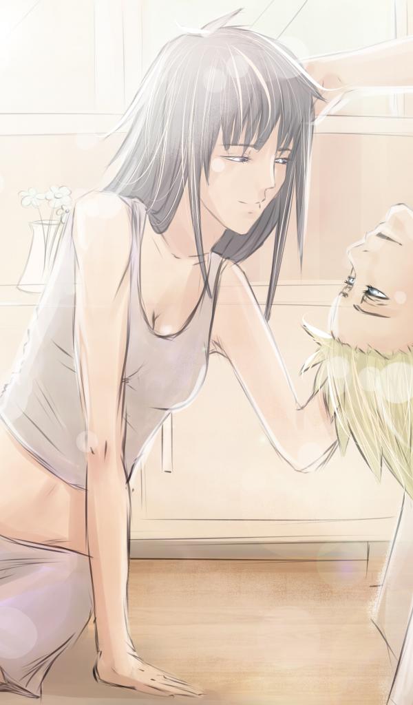 » Wallpaper The girl sits on the floor and the guy on the bed