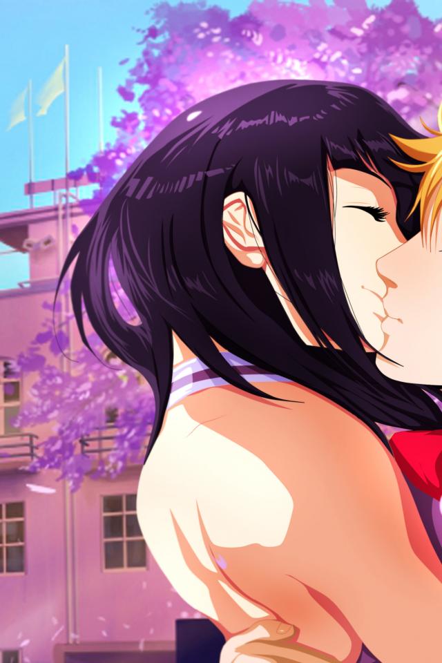 Wallpaper Lovers kiss in the park
