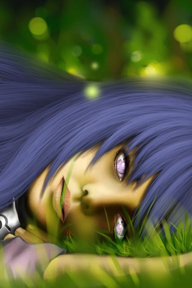 Wallpaper Green grass, Long hair, lies