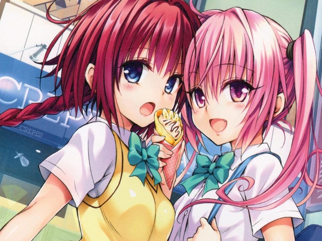 Wallpaper Two girlfriends on the street