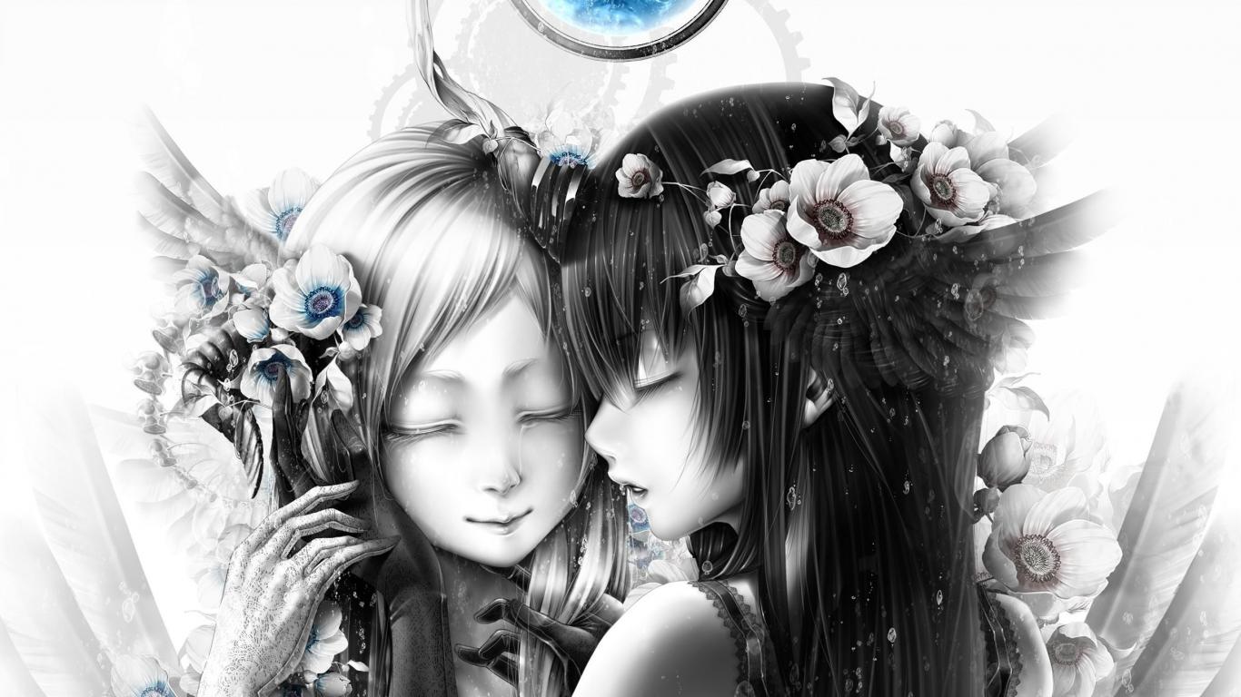 » Wallpaper Two girls under the blue moon