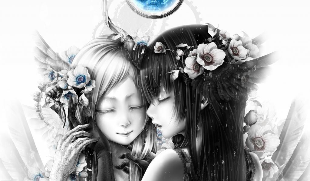 Wallpaper Two girls under the blue moon