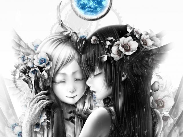 Wallpaper Two girls under the blue moon