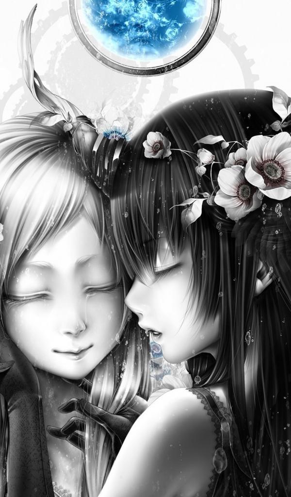 Wallpaper Two girls under the blue moon