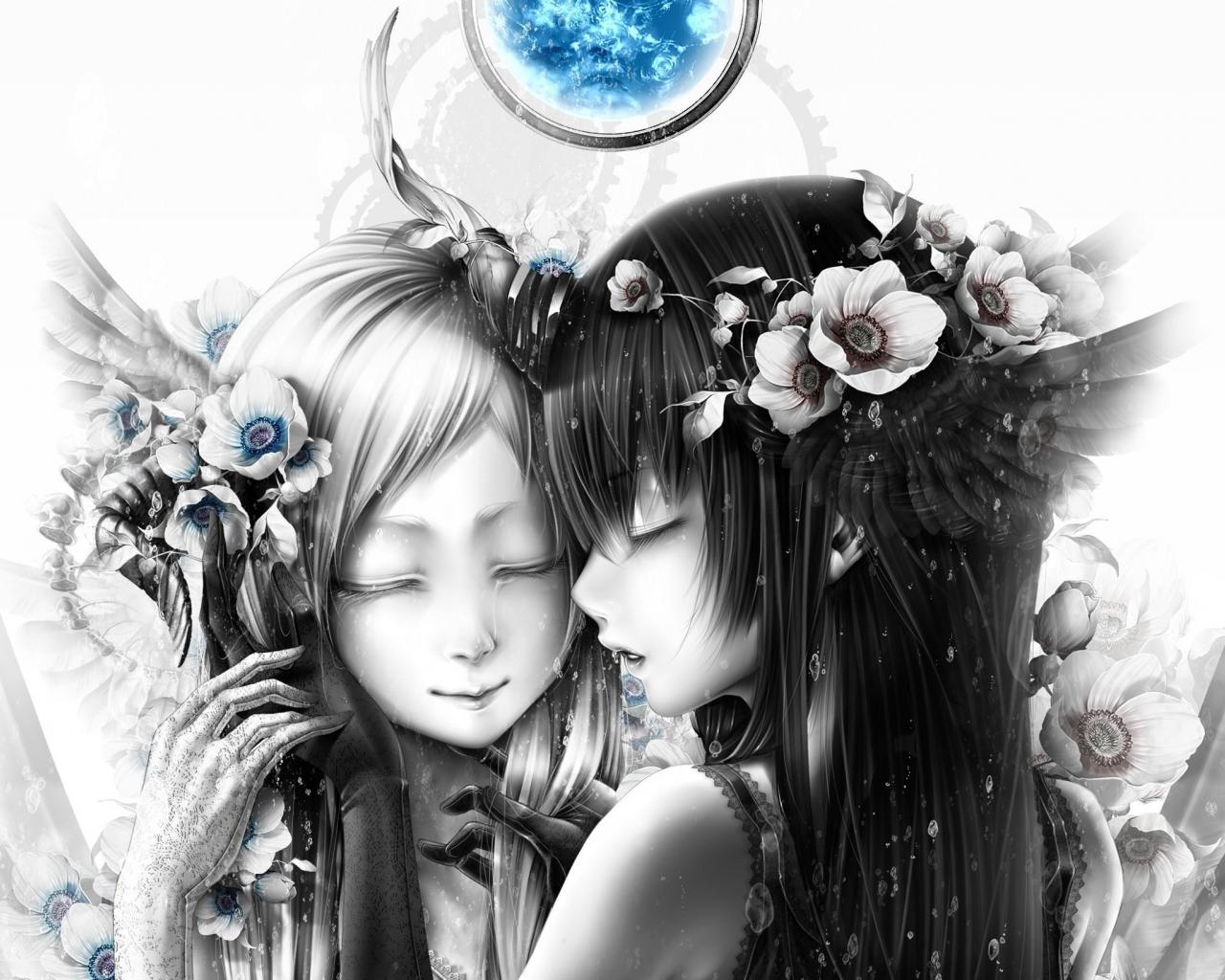 Wallpaper Two girls under the blue moon