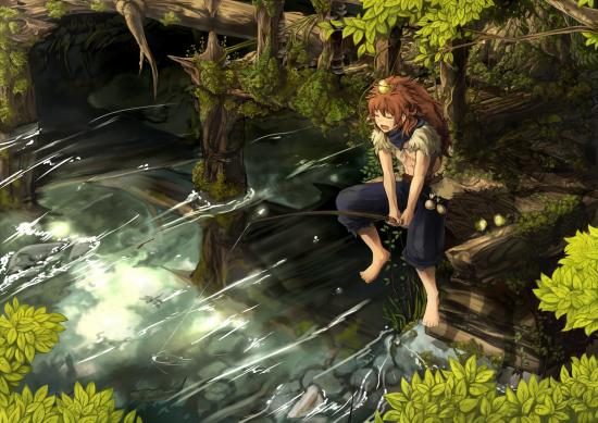 Wallpaper Girl with a fishing rod fishing