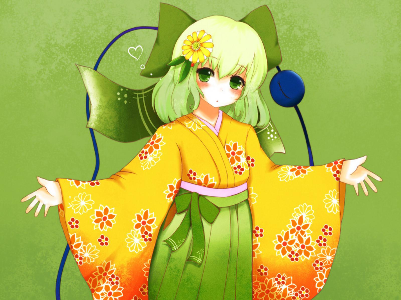 Wallpaper Red-haired girl in a lavender kimono lies on the floor
