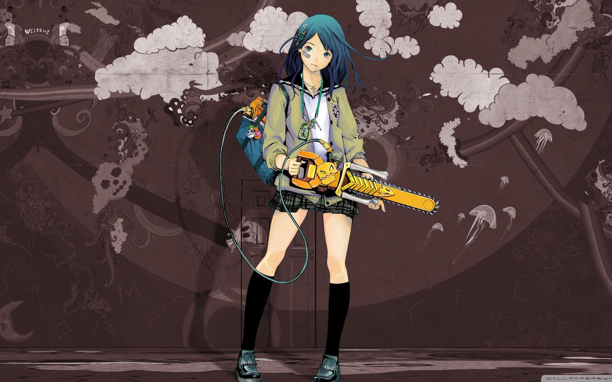 Wallpaper Girl with a chainsaw