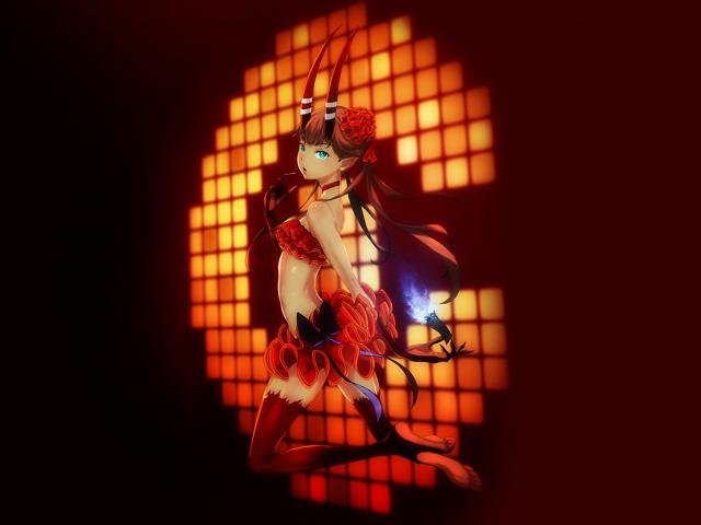 Wallpaper Anime girl with horns