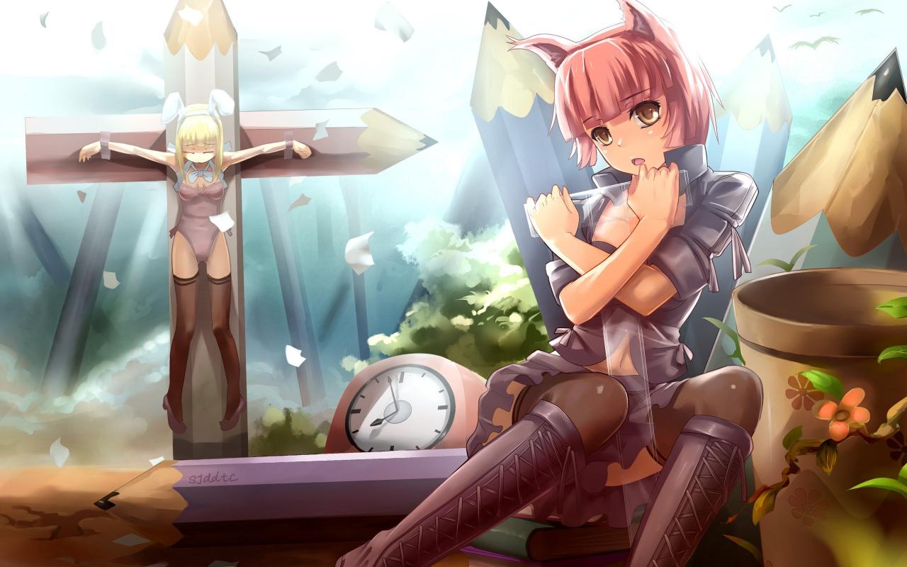 Wallpaper The girl on the cross of pencils