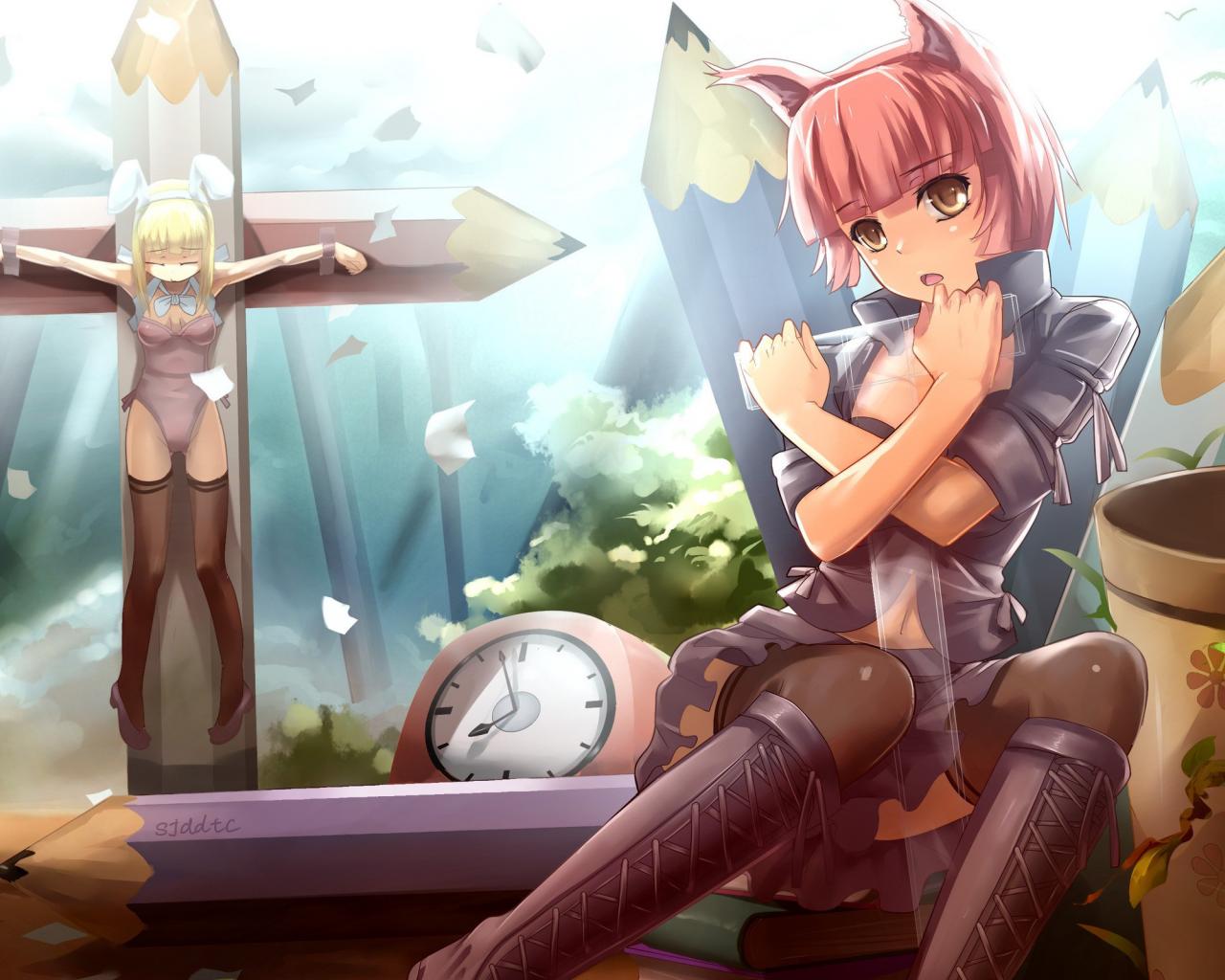 Wallpaper The girl on the cross of pencils