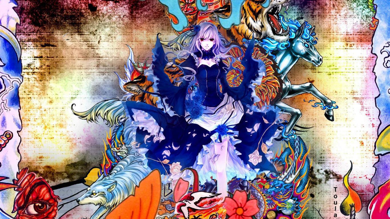 Wallpaper Anime girl in colors