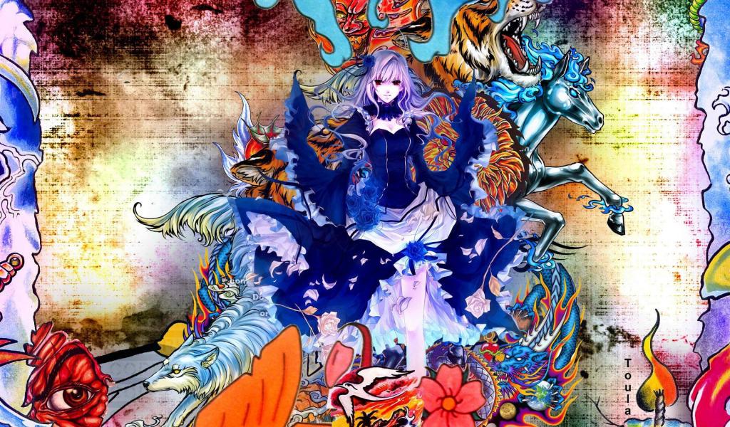 Wallpaper Anime girl in colors