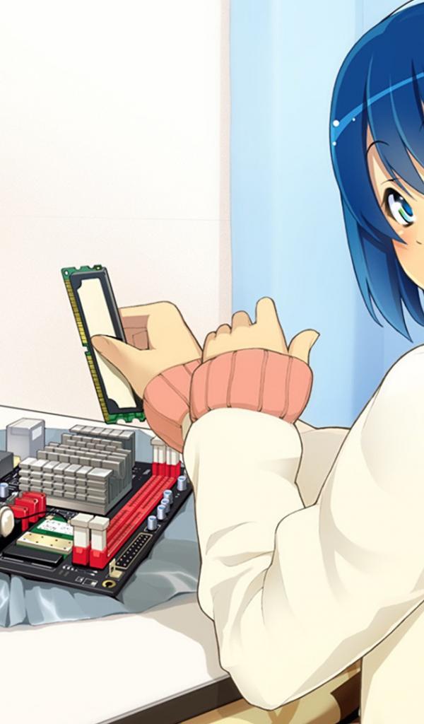 Wallpaper A girl collects computer