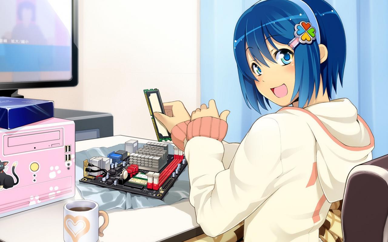 Wallpaper A girl collects computer