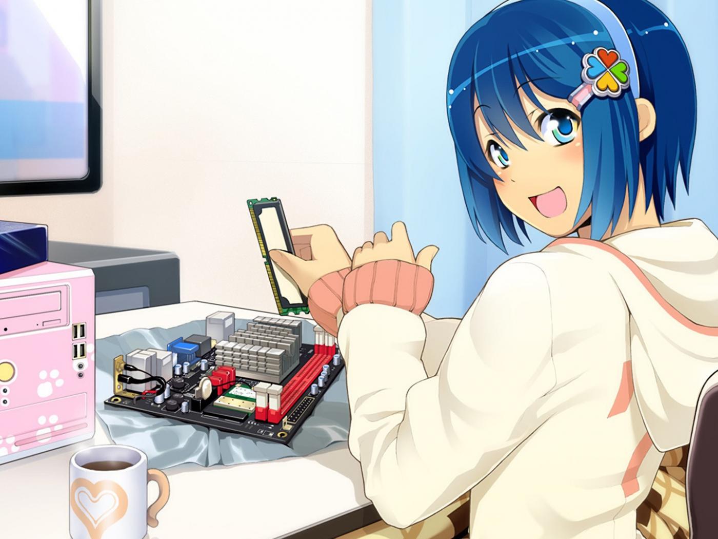 Wallpaper A girl collects computer