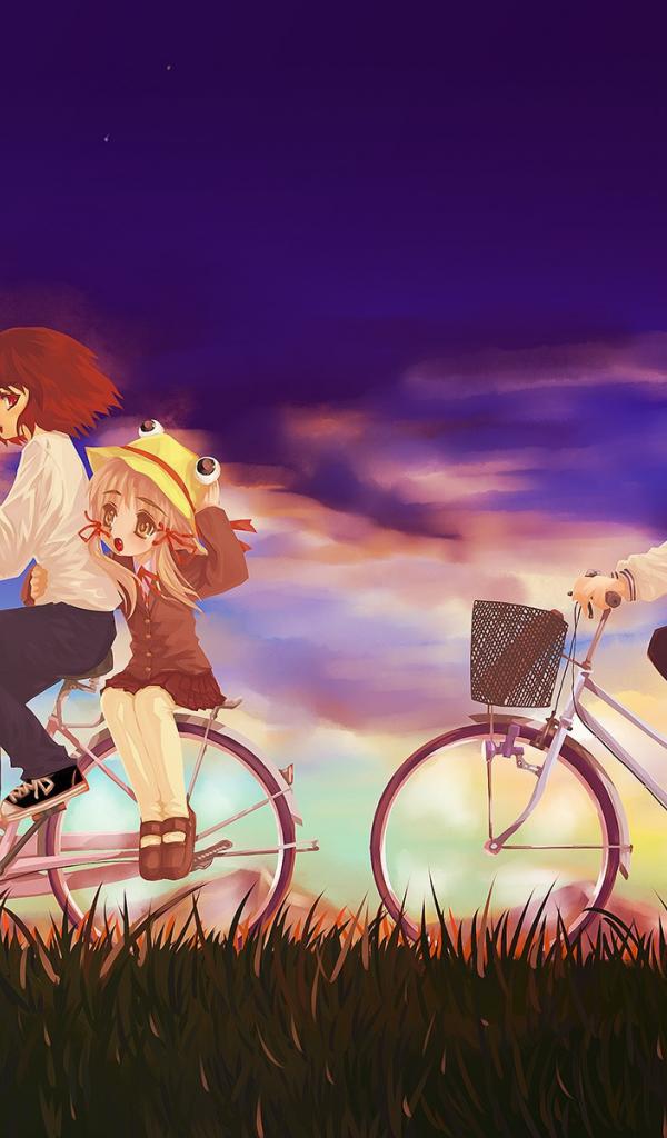 Wallpaper Girls riding on bicycles