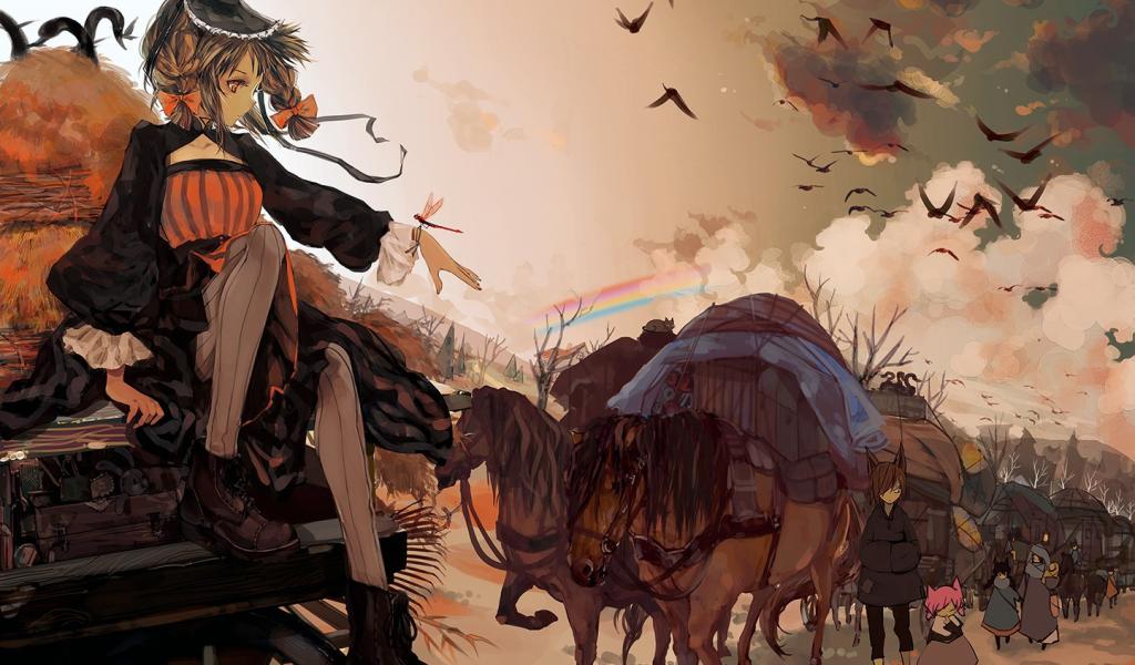 » Wallpaper Girl sits on the wagon