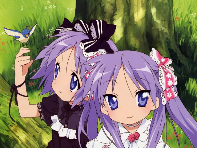 Wallpaper Two girls with a little bird