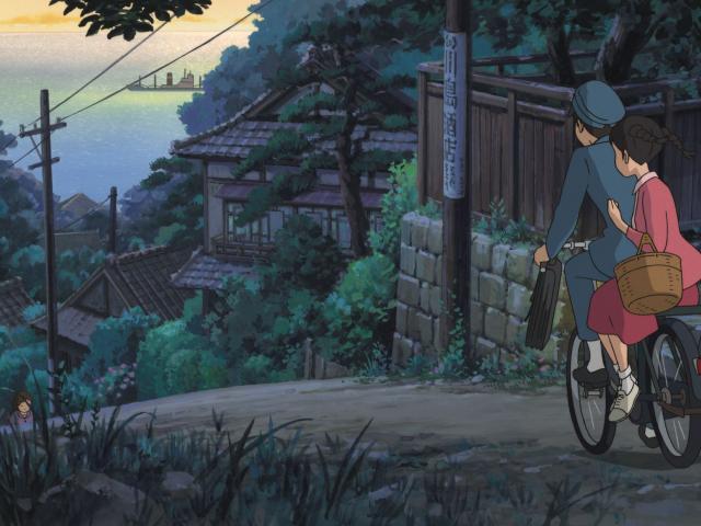 Wallpaper From Up On Poppy Hill, boy and girl riding a bicycle