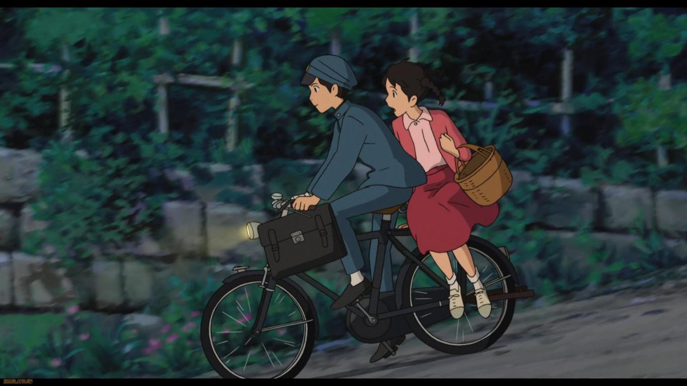 Wallpaper From Up On Poppy Hill, boy and girl on a bicycle