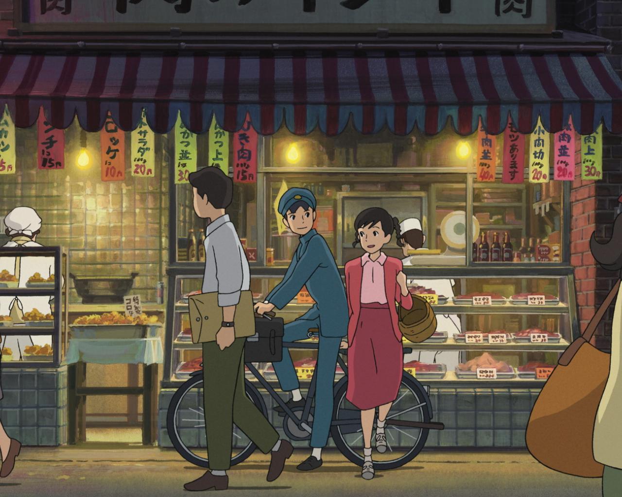 Wallpaper Anime cartoon Miyazaki city bustle
