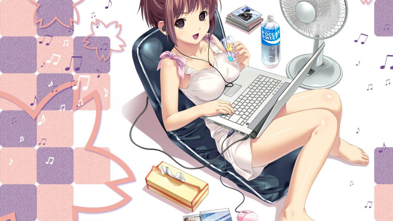 Wallpaper Anime girl with the computer