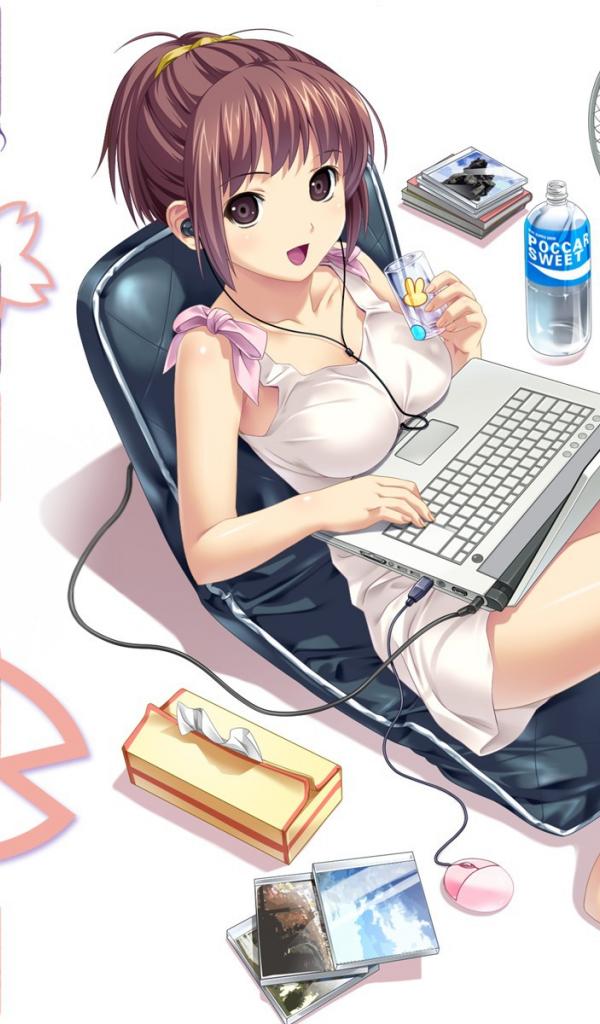 Wallpaper Anime girl with the computer