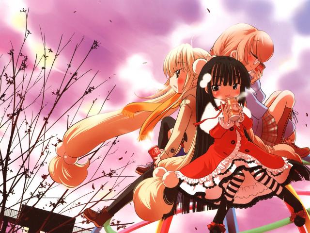 » Wallpaper Anime girls drink from cans
