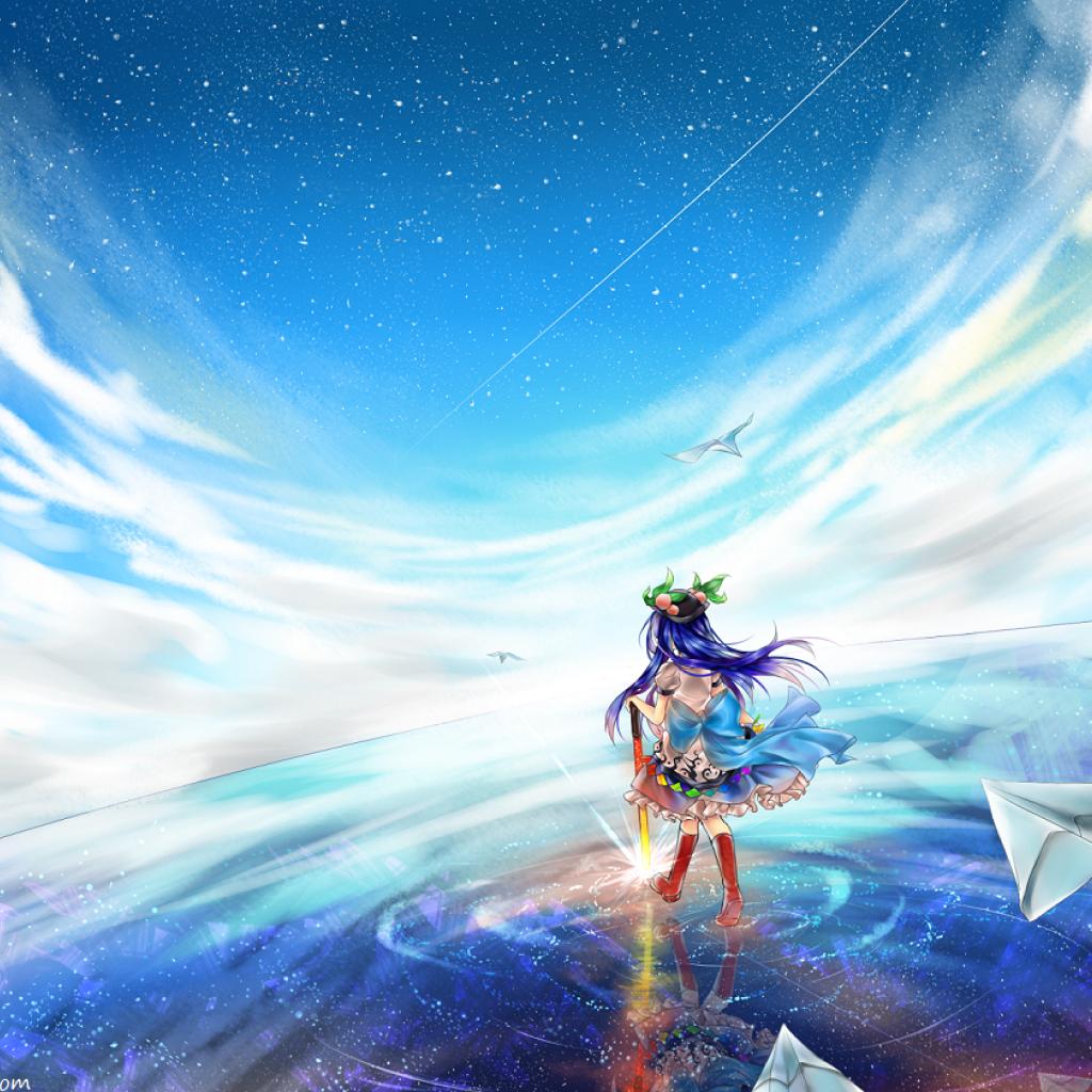 Wallpaper Hinanawi Tenshi Touhou blue hair water wallpaper