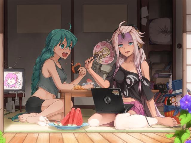 Wallpaper Hatsune Miku Megurine Luka Vocaloid anime girls artist wallpaper