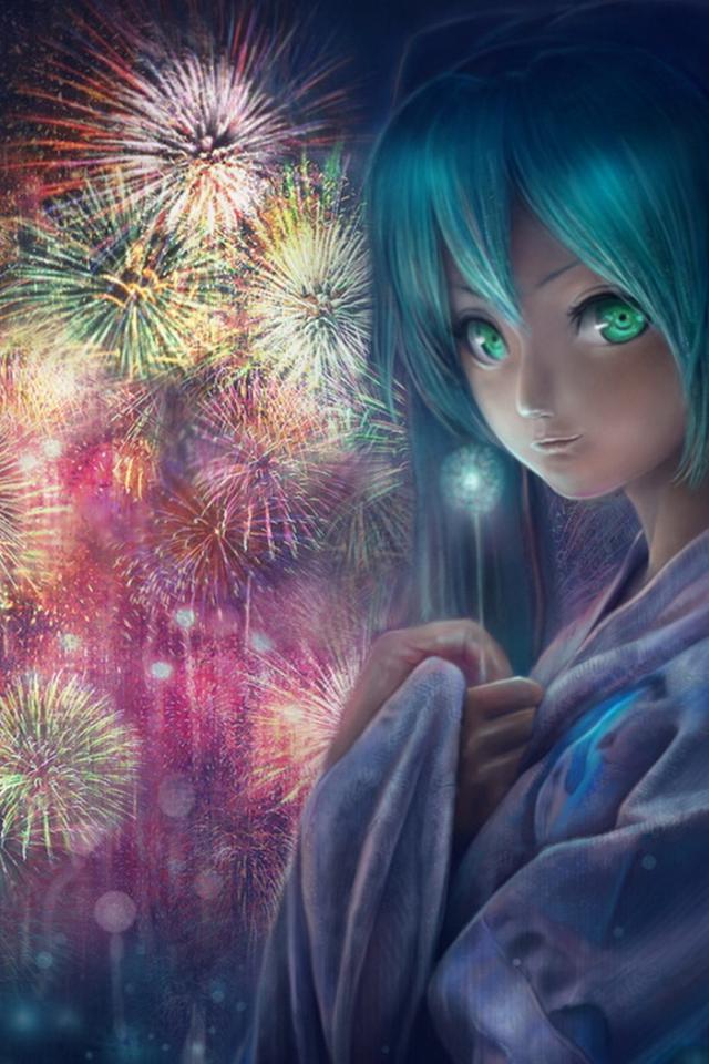 Wallpaper Girl and fireworks