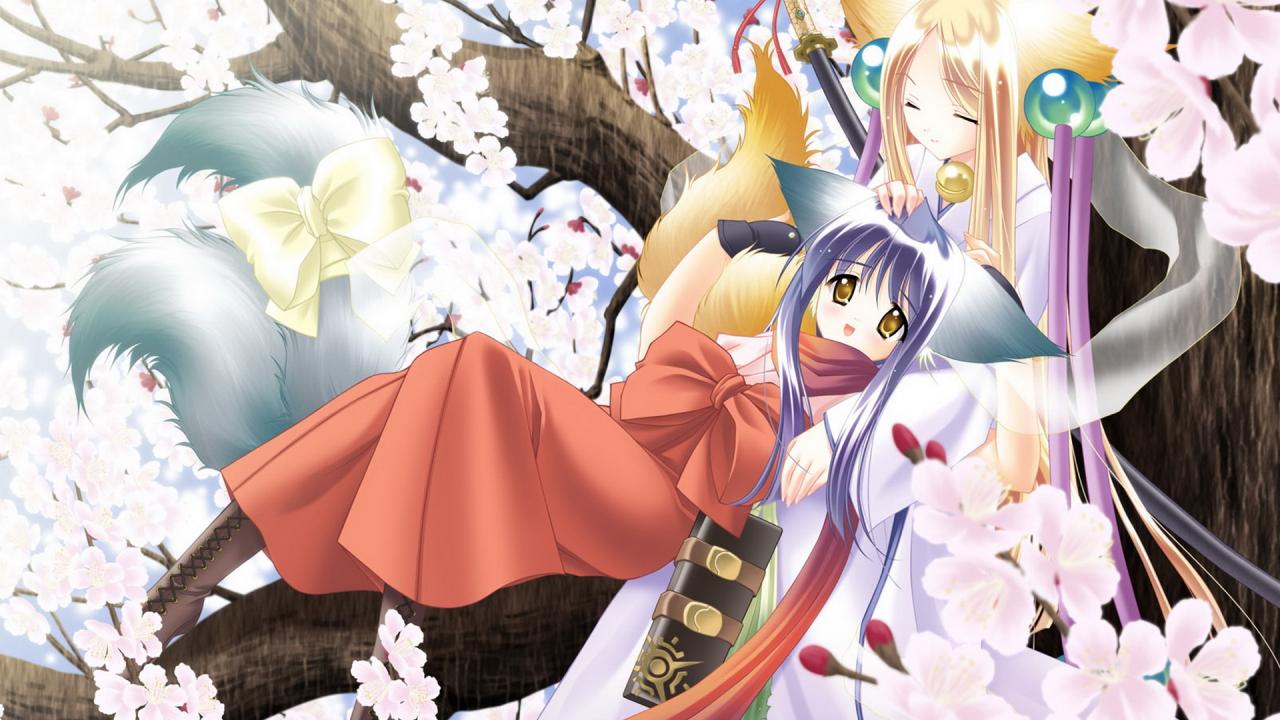 Wallpaper Girls on a tree