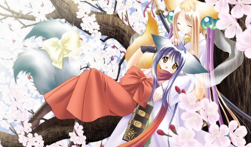 Wallpaper Girls on a tree