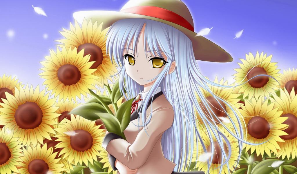 Wallpaper Girl among sunflowers