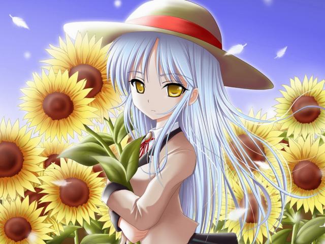 Wallpaper Girl among sunflowers