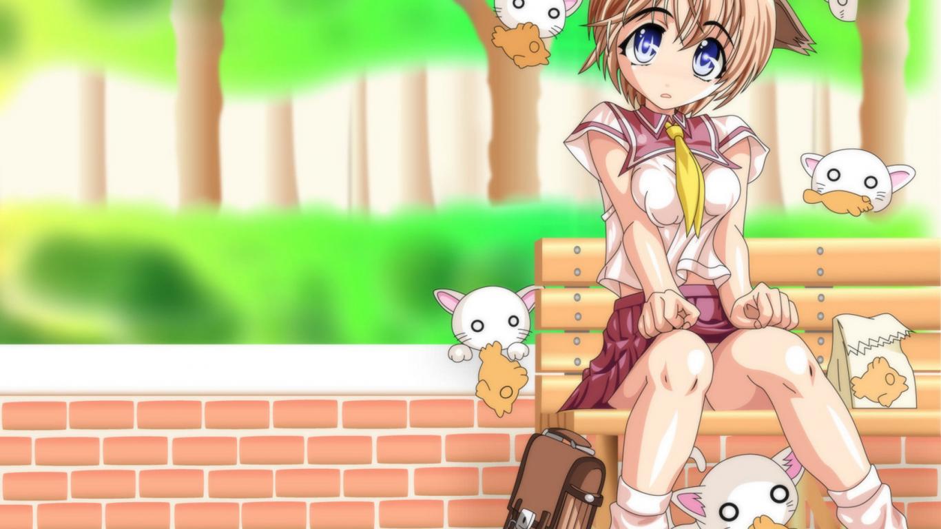 Wallpaper The little girl and kitties
